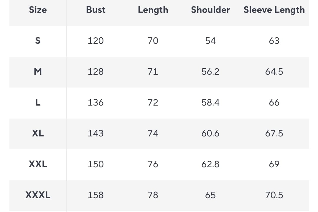 XL:バスト 143 / 着丈 74 / 肩幅 60.6 / 袖丈 67.5